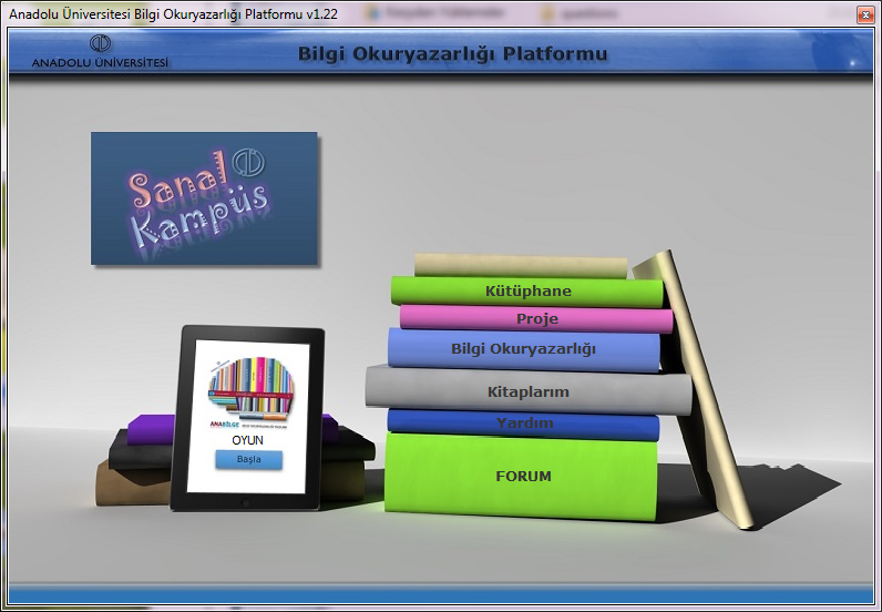 ANABİLGE Literacy Knowledge platform allows you to access Virtual Campus, Form Page of Literacy Knowledge , Library and AnaBilge game. This software is developed within a scientific research project of Anadolu University.