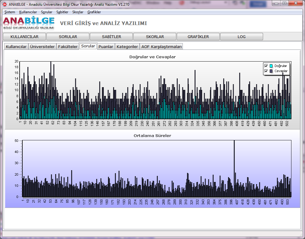 ANABİLGE Analyser is an application that allows you to input data and analyse results about the knowledge for open education students. This software is developed within a scientific research project of Anadolu University.