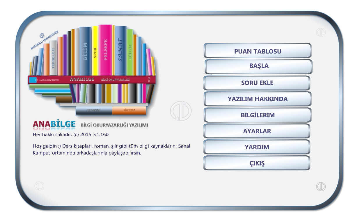 ANABİLGE GAME is a database based test game which is about to measure the knowledge for open education students and developed to improve their knowledge on Literacy. This software is developed within a scientific research project of Anadolu University.